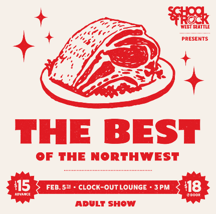 School of Rock West Seattle Presents: The Best of the Northwest (adults show)All Ages bar w/ IDSun Feb 5thDoors 2:30$15 adv/$18 dos
